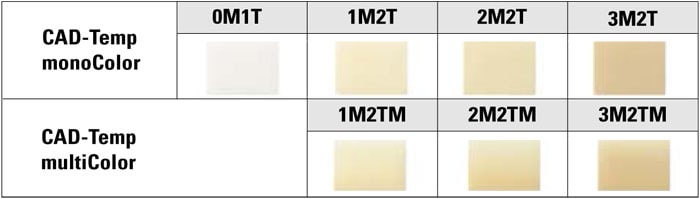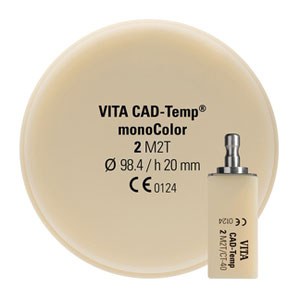 VITA CAD-Temp monoColor и VITA CAD-Temp multiColor состоят из уникального безволоконного, гомогенного, высокомолекулярного и связанного акрилатного полимера с керамическим микронаполнителем, так называемого MRP материала. Разработанный фирмой VITA MRP материал (Microfiller Reinforced Polyacrylic) представляет собой полимеризацию неорганического микронаполнителя с органическими (не содержащими метилметакрилат) частицами, равномерно распределенными в полимерной сетке; в сочетании с уникальным методом напрессовывания NPV обеспечивает исключительное качество материала и превосходную устойчивость к истиранию.